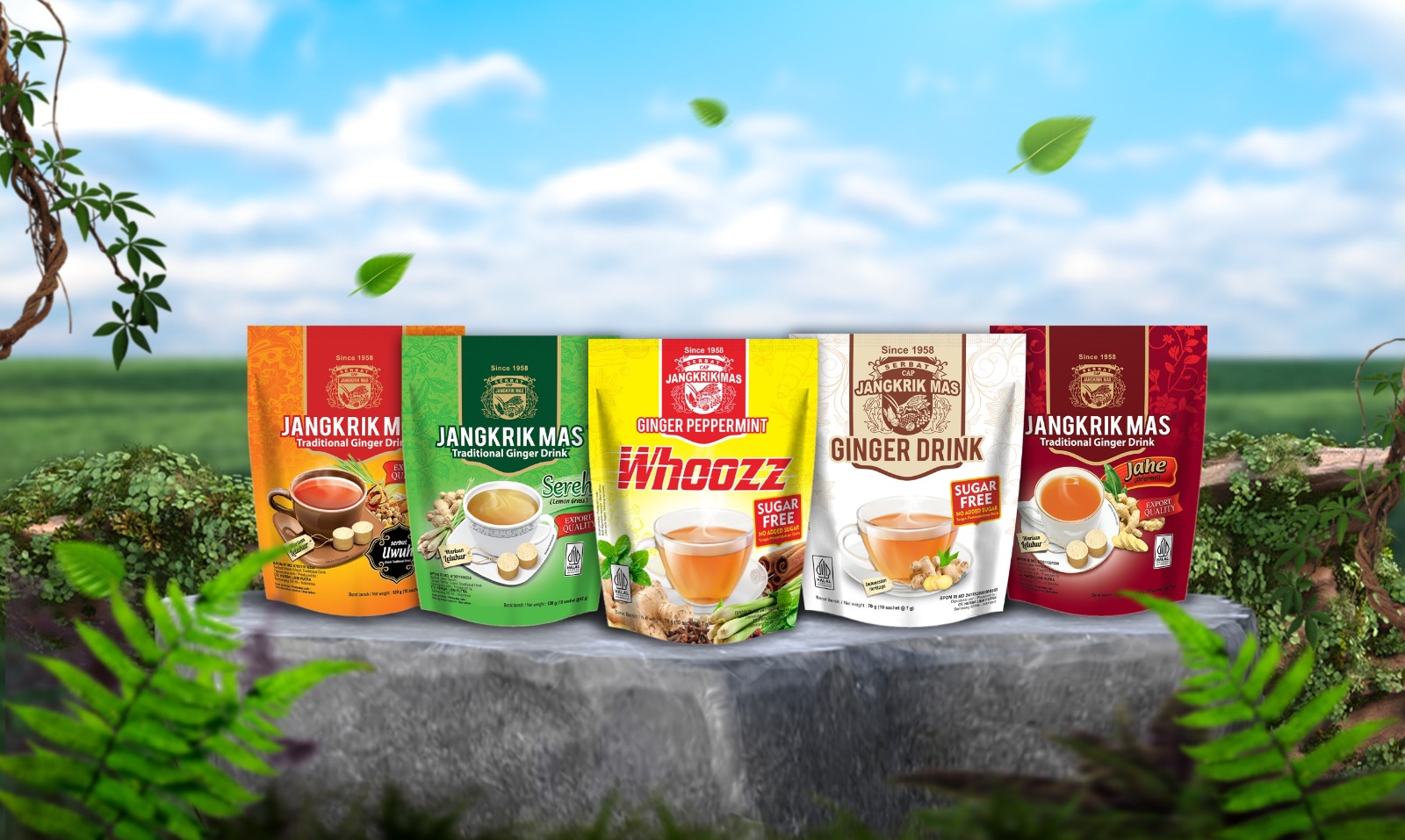 Wedang Jahe Serbat Jangkrik Mas Terdiri Dari 5 Varian Yaitu Original , Sereh , Uwuh , Sugar Free dan Pappermint Whoozz